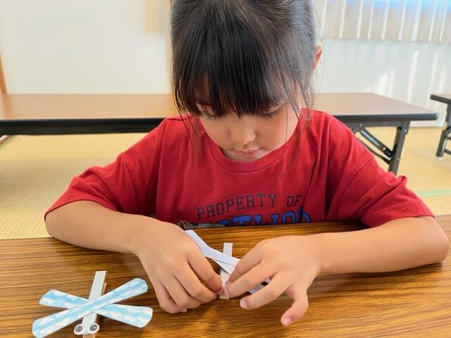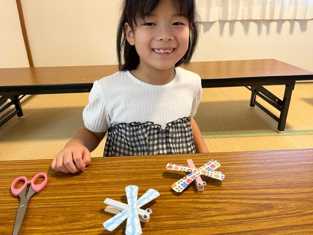 9月の壁面製作は、ウッドピンチを使ったトンボ作りをしました!