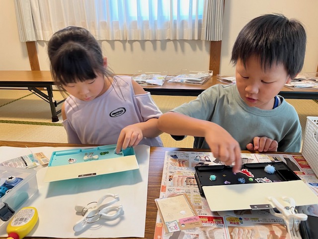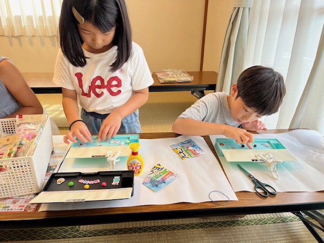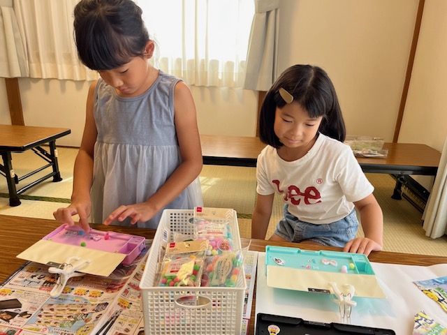 夏休み中、こどもたちが自分の好きな製作を行う選択制の製作を行いました❢