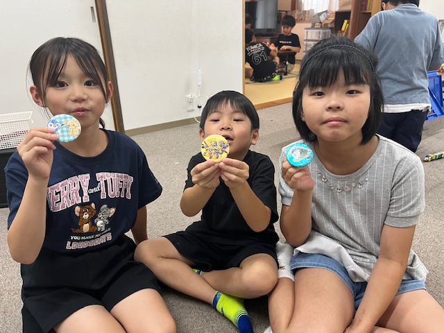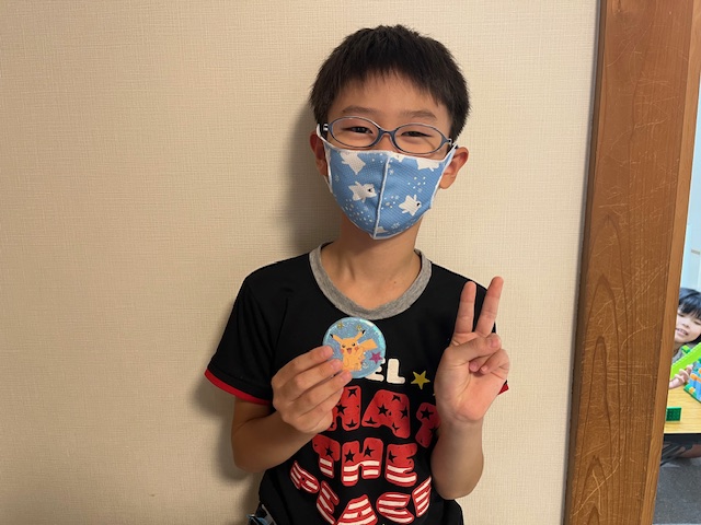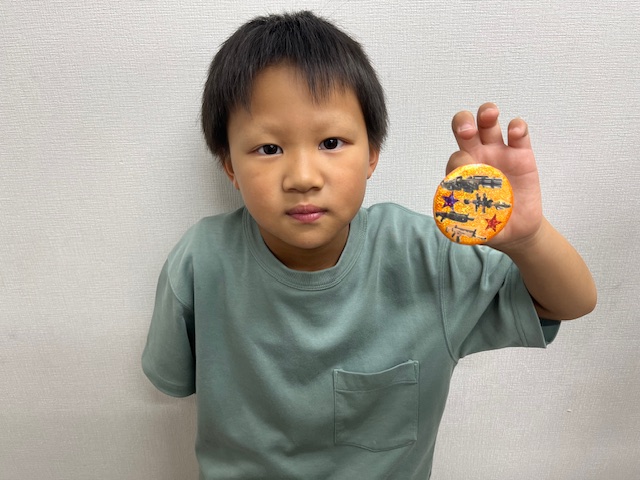 好きなキャラクターやシールを貼って缶バッジ製作もしたね😊