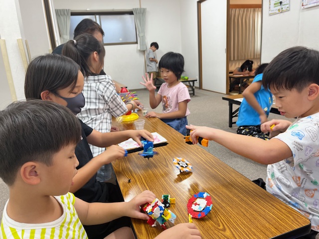 また、ベイブレードというおもちゃをLaQで作って実際に回すことができ対戦して遊んだりもしました❢