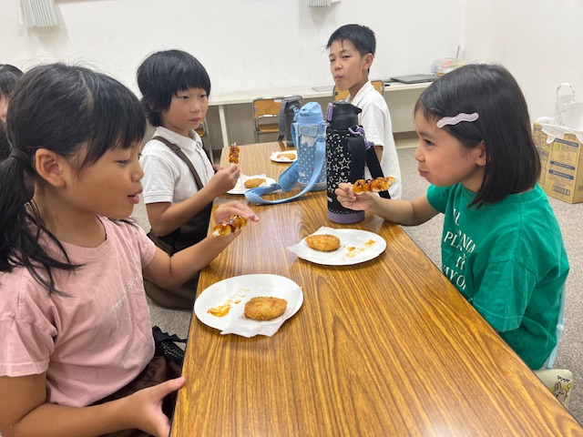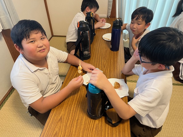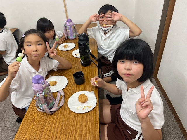 みたらし団子や三色団子、あんこの団子などなどいろいろな種類の中から好きなお団子選んで、こどもたちはとっても美味しそうに食べていました😋🎶