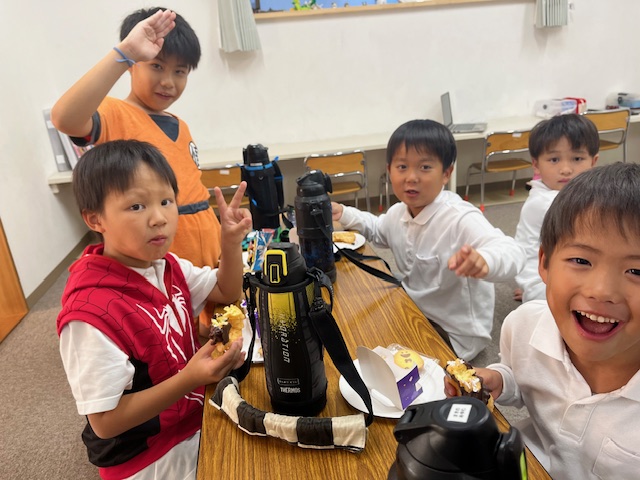 その後のおやつでは「トリックオアトリート」と支援員に言って、おやつはハロウィンドーナツを受け取り、みんなで食べました😋🍩