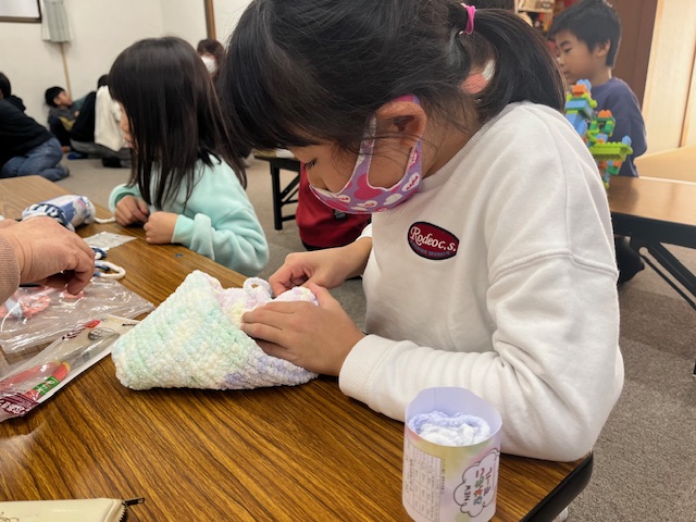 ポシェット作りは男子にも女子にも大人気で、今年はボタン付きのポシェットも作ることができたのでこどもたちも大喜びでした😊