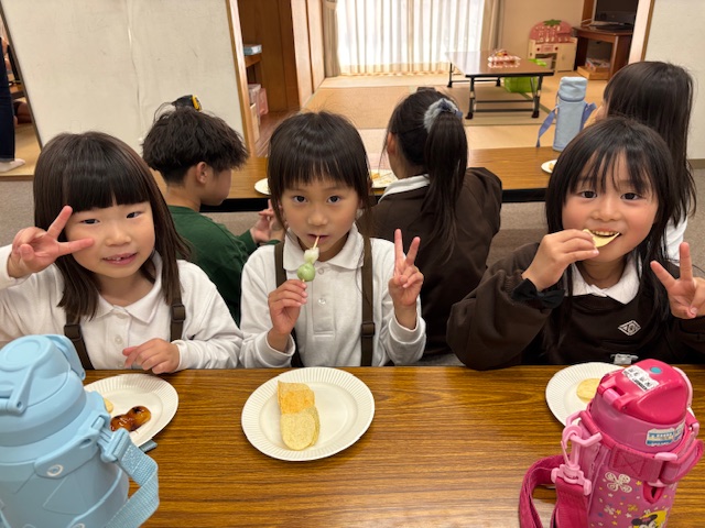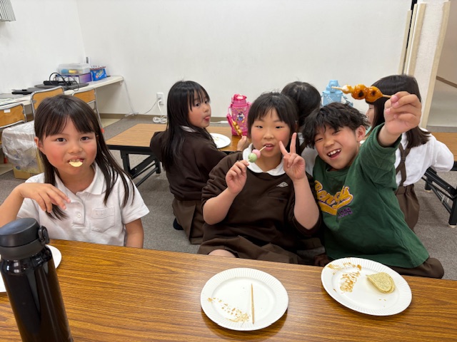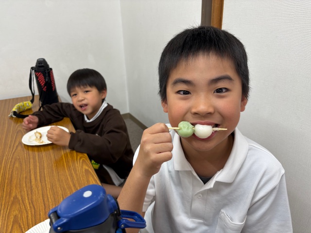 あんこのお団子、三色団子、みたらし団子から好きなお団子を選んで食べました🎶こどもたちみんな、「おいしい~おいしい~」と言って食べていました😋