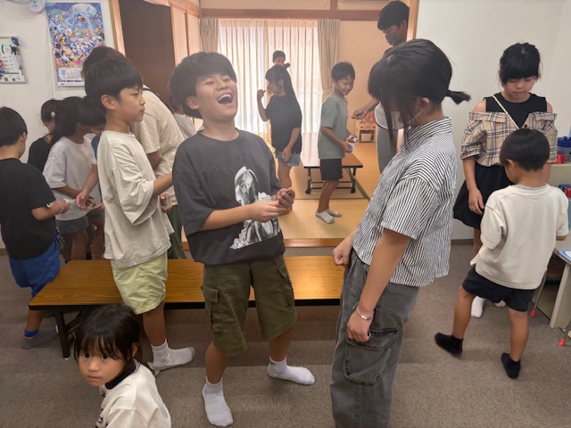 8月20日(水)には治田東ANNEXのこどもたちとおやつ交流会をしました❢ANNEXと治田東の子が混ざってグループを作り、じゃんけんゲームをしました✋✊✌