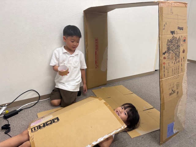 学童保育所で大きな段ボールが出た時にはみんなで家を作りました🏠