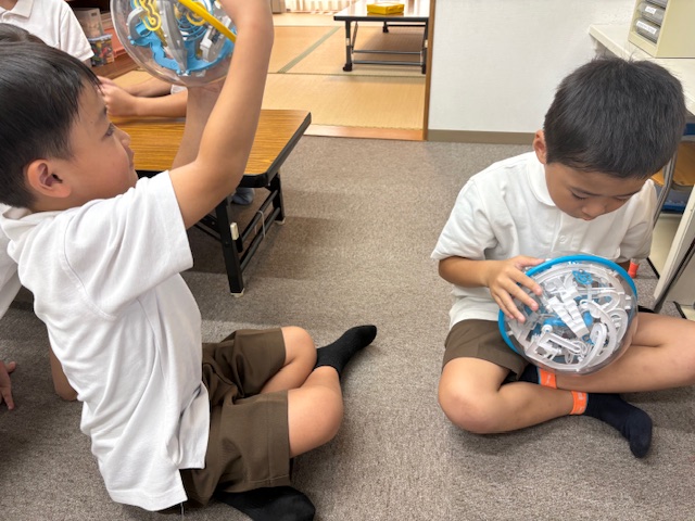 また、球体の中の道にボールを転がすパープレクサスという遊びも人気でゴールまで行けるように毎日頑張っています❢