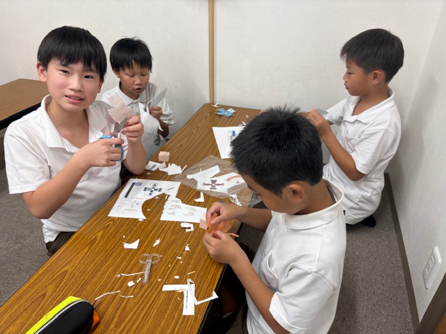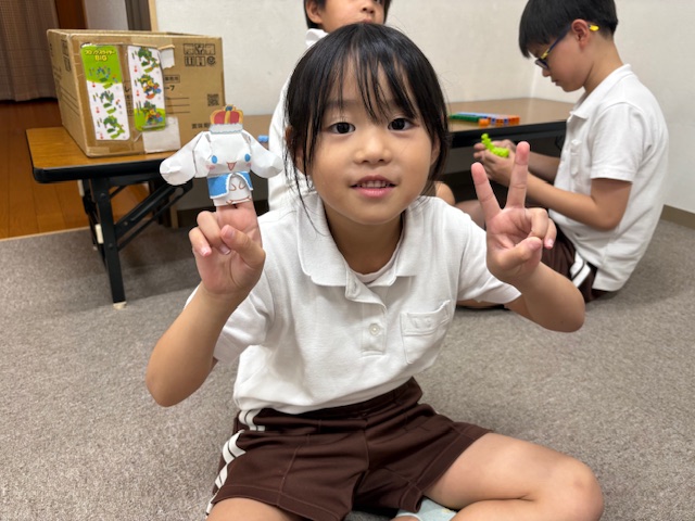 室内遊びでは、ペーパークラフトという紙を切って組み立ててキャラクターを作る遊びが大人気で毎日取り組んでいます✂サンリオや鬼滅の刃のキャラクターなど自分の好きなキャラクターを選んで夢中で作っています😊