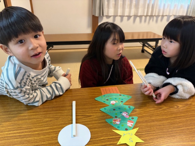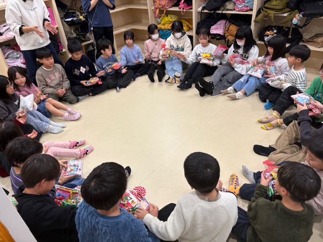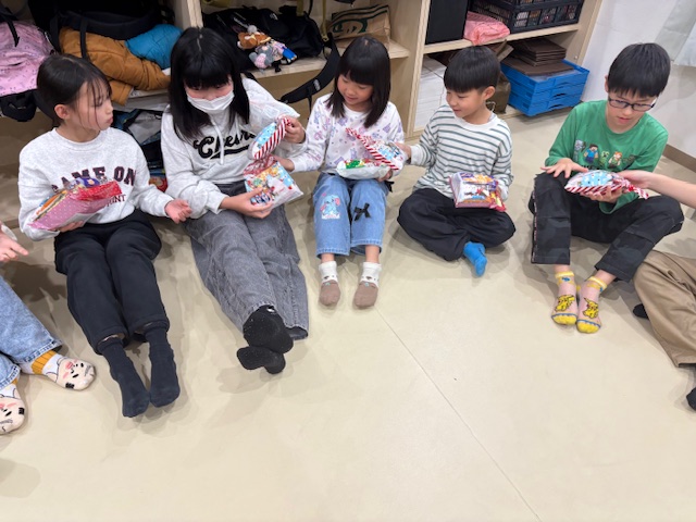 音楽に合わせてリズムよくプレゼントを渡すことが難しく、最後にプレゼントを持っていない子がいるアクシデントもありながら全員での初めてのプレゼント交換を楽しむことができました🌟