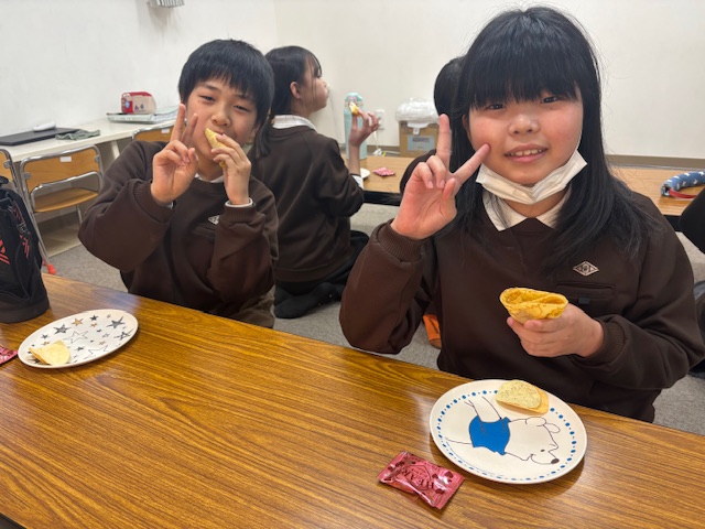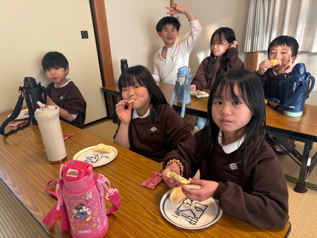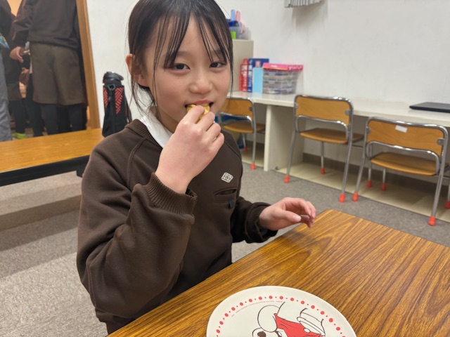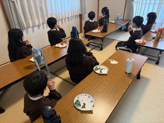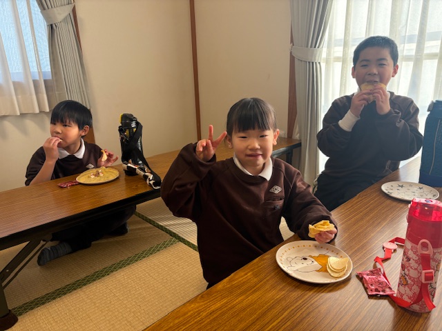 2月3日の節分にはサンドイッチ用のパンにウインナーやチョコソースを自分たちで巻いて恵方ロールを作り、今年の恵方南南東を向いて食べました👹福を逃がさず縁を切らないという願いを込め一つ食べ終わるまでは話さず食べきりました😆