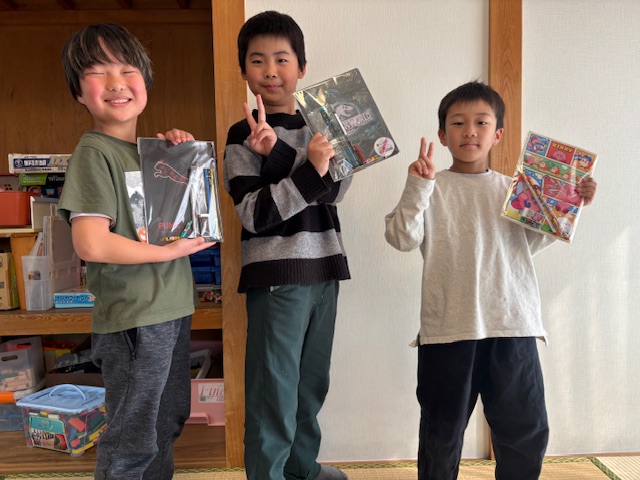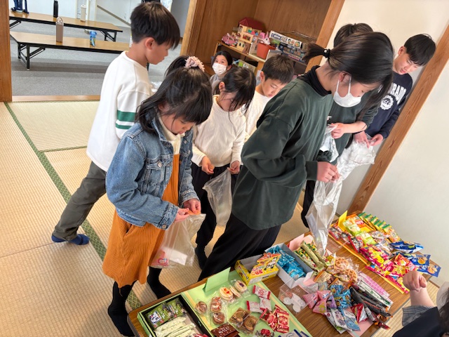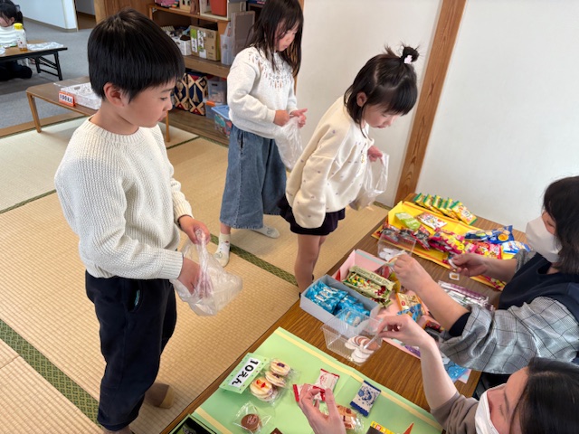 お別れ会ではビンゴをしたり、自分の好きなおやつを買うことができるお買い物ごっこをしたり、みんなで楽しみました🎶