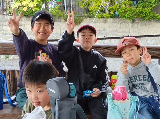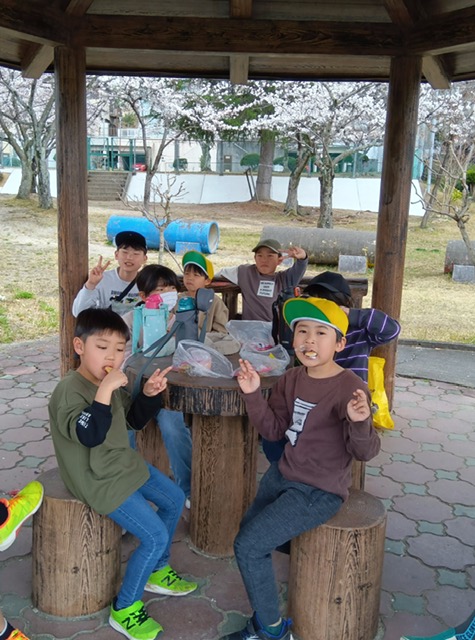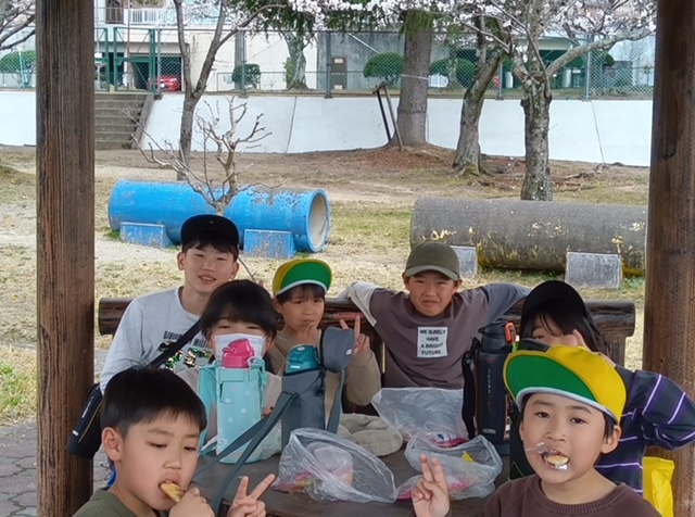 桜を見ながら外で食べるおやつはまた格別においしかったようです😄