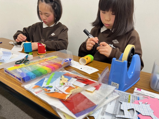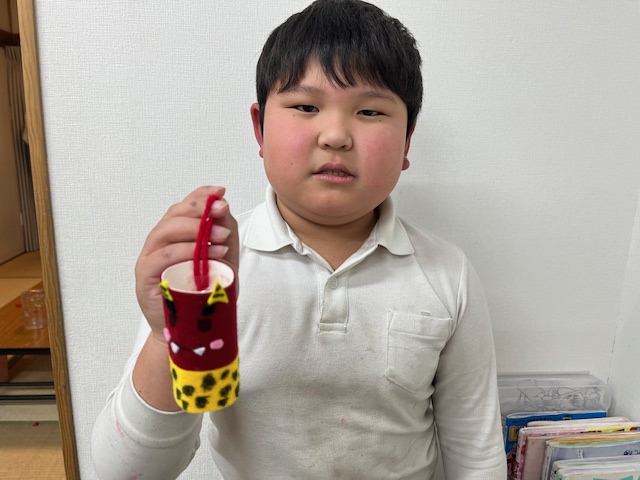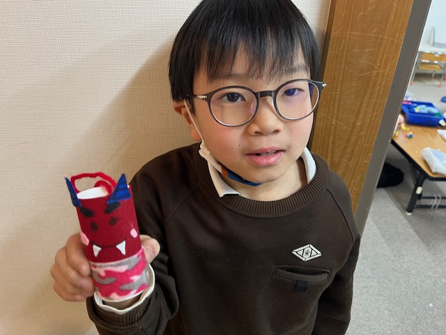 また節分に向けて、トイレットペーパーの芯とフェルトを使った鬼作りもしました👹