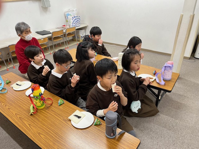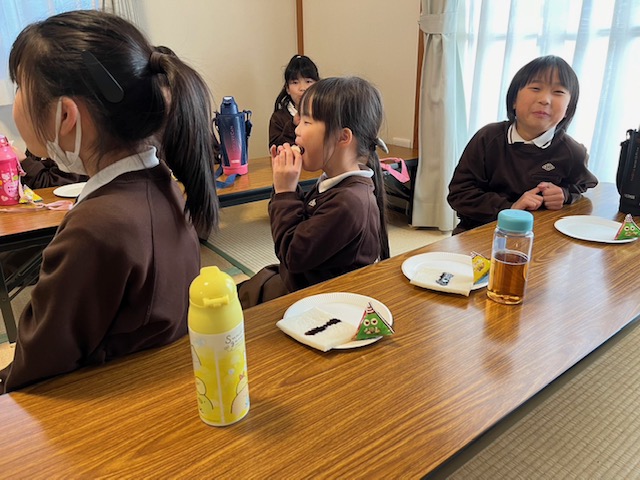 毎年恒例になっているおやつで、ウインナーやチョコソースをかけたロールサンドを今年の恵方に向かって食べました😋