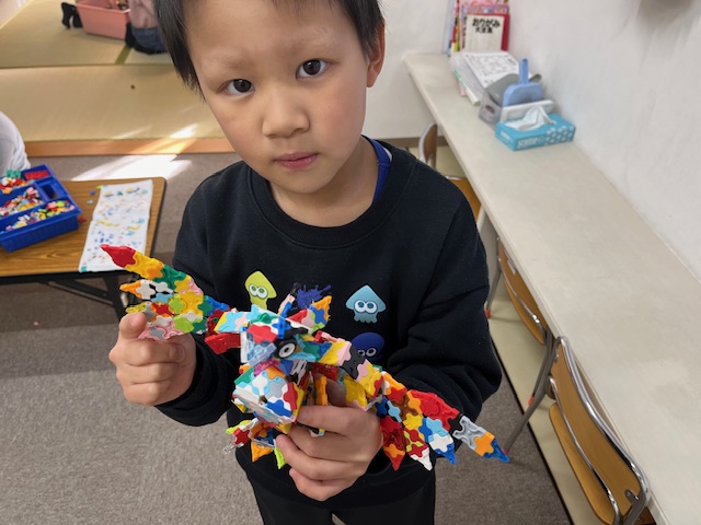 室内遊びでは、LaQやブロック時間をかけて大作を作っています👏