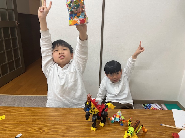 作り方の本とにらめっこしながら一つ一つ丁寧に作っています!完成した作品を保護者に見せる子どもたちの笑顔はとっても嬉しそうです✨