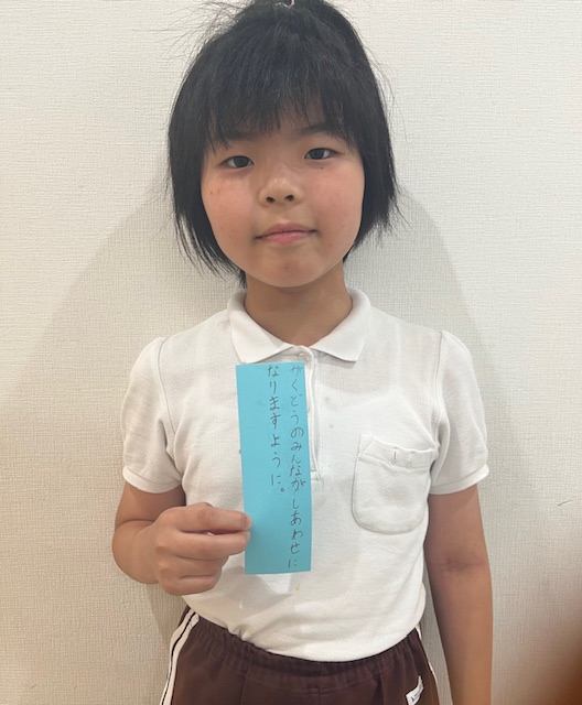 警察官やサッカー選手、薬剤師になりたいなどの将来なりたいものから、友達と仲良く遊べますように、みんなが幸せになりますように、学童のみんなが幸せになりますようになどみんなの幸せを願うもの、そしてリラックマになりたいという可愛らしいものまで、こどもたちの短冊を見る保護者の方も笑顔になります😊